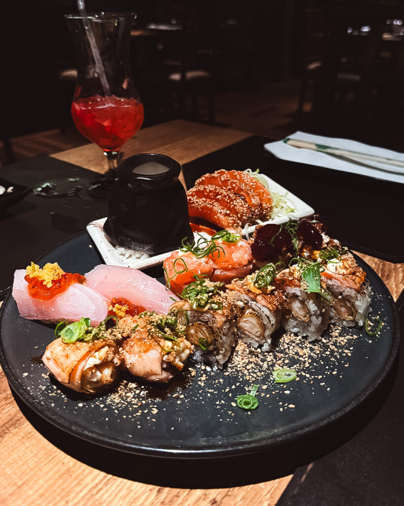 Mas o grande destaque são os combinados, verdadeiras obras de arte gastronômicas. Cada peça é cuidadosamente montada, equilibrando cortes precisos, ingredientes frescos e combinações de sabores que surpreendem até os mais exigentes apreciadores da culinária japonesa.