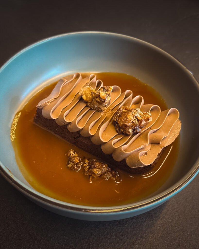 Uma combinação simplesmente irresistível: brownie da casa com nozes, servido sobre uma delicada cama de caramelo salgado e finalizado com uma generosa camada de ganache de chocolate com cream cheese. Uma sobremesa que equilibra doçura, textura e aquele toque de conforto que a gente não esquece.